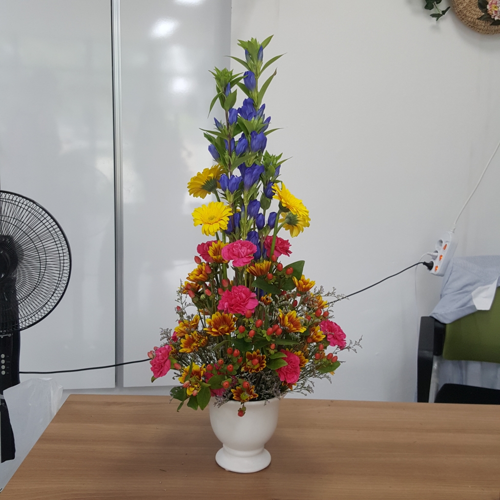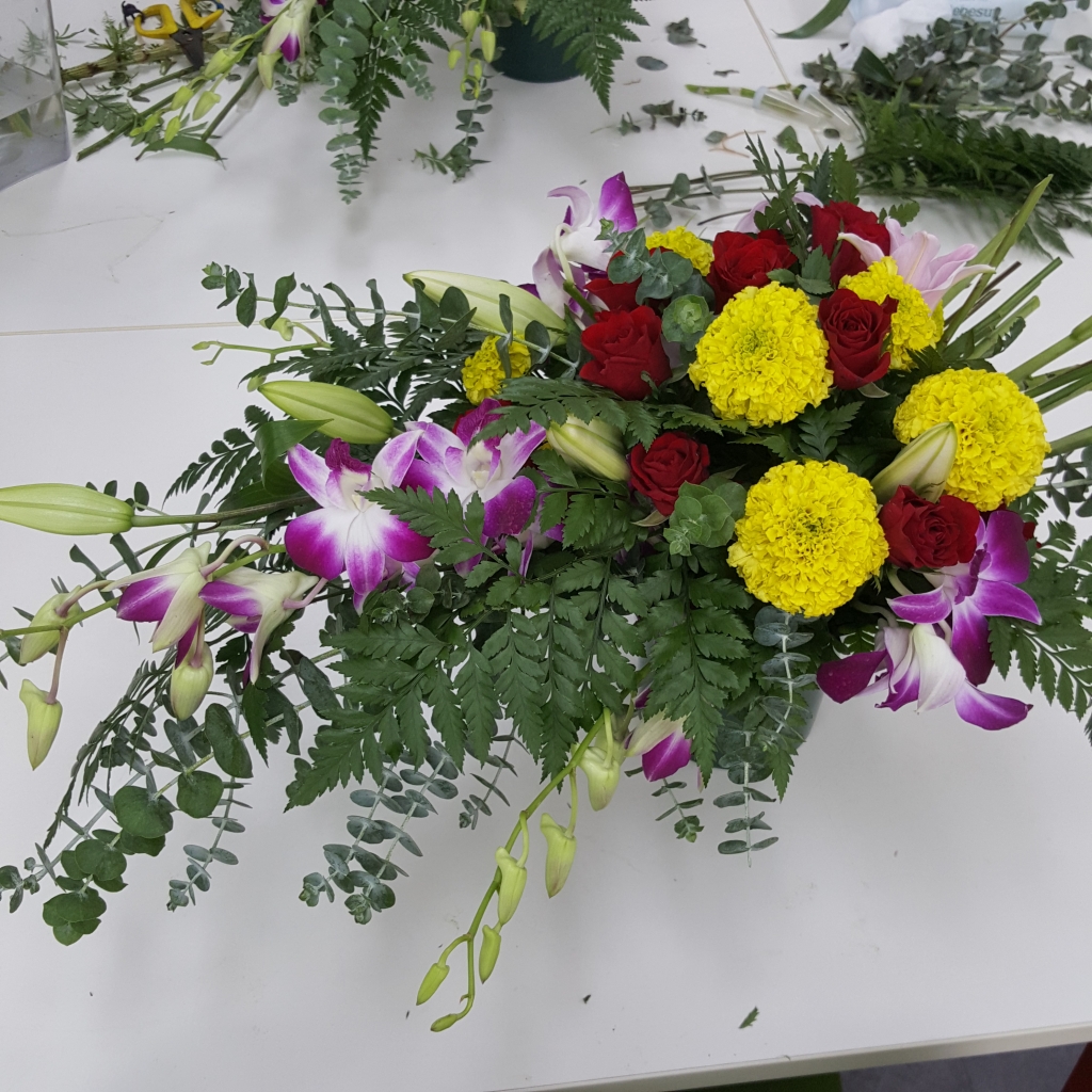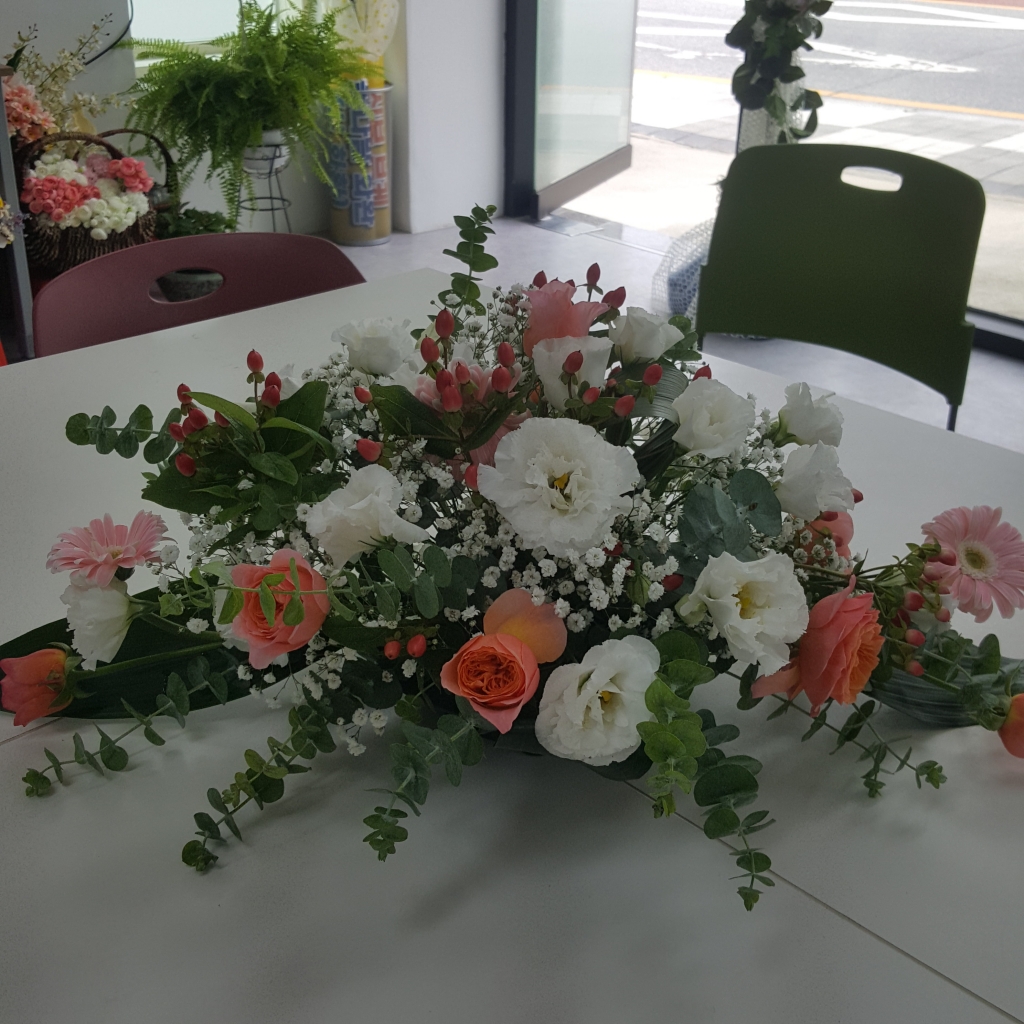 타원형 꽃바구니로 가장 기본적인 꽂꽂이 방법입니다