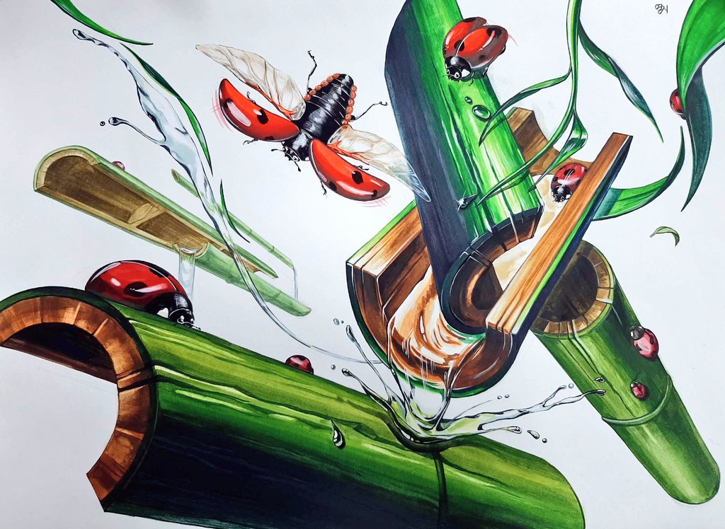 대나무와 무당벌레를 이용해 그린 기초디자인 그림입니다.