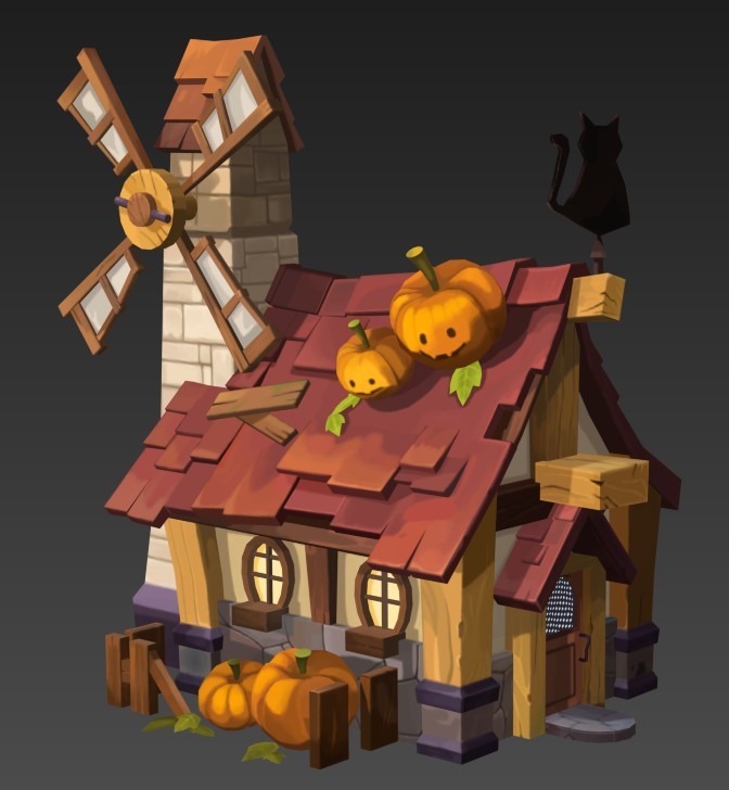• 호박 집은 학원에서 두 번째로 만들었던 작품이고, 가장 시간이 많이 걸린 작품입니다. 낮은 채도 문제와 잘 안 보이는 디테일 문제를 해결해보고자 많은 노력을 했었습니다