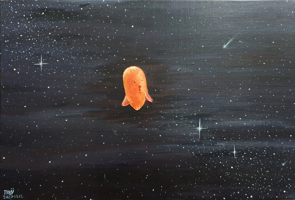 • 드 넓은 우주어딘가에서 홀로 고독하게 떠다니는 소세지, 하지만 무수히 많은 별빛이 아주 멀리서 빛나고 있다